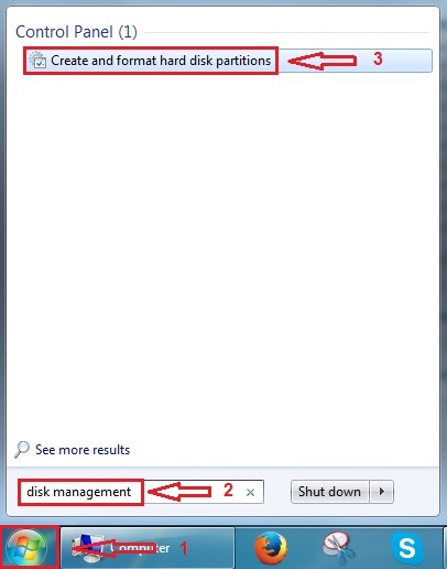بعد از دیدنِ درایوهای هارد و مطمئن شدن از وجودِ درایوهای هارد متصل شده، طبق تصویر زیر عمل کنید. در ویندوزهای 8.1 و 10 برای رفتن به تصویر زیر از کلید های ترکیبی windows+R استفاده کنید. منوی RUN ظاهر میشود سپس عبارت Disk Management را کامل تایپ کنید.