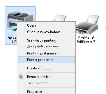 برای این کار روی پرینتر مورد نظر کلیک راست کرده و گزینه printer properties را انتخاب کنید . و نام پرینتر کپی کنید .مطابق شکل زیر