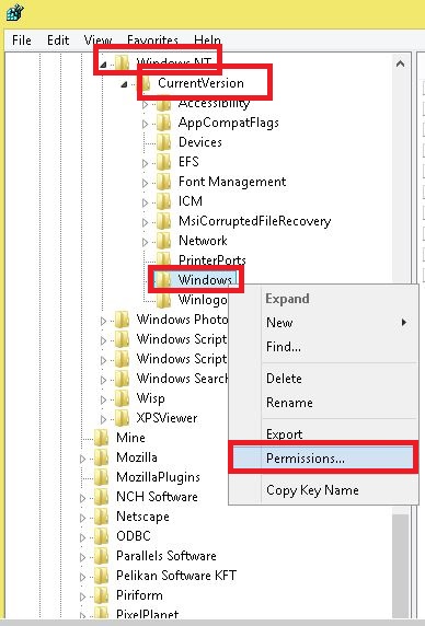 Hkey_current_user \ software \ microsoft \ windows NT \ current version \ windows
