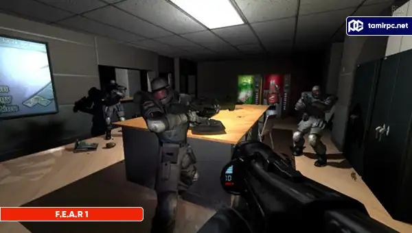 جهان ترسناک و جذاب: بازی F.E.A.R. با الگوبرداری از عناصر معروف فیلمهای ترسناک، شما را وارد یک جهان تاریک و ترسناک میکند. محیطهای پراشباع و طراحی دقیق جزئیات، همراه با جلوههای صوتی و نورپردازی بهخصوص، احساس ترس و هیجان را به شما القا میکند.