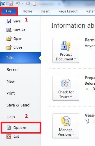 ابتدا به منوی File رفته و گزینه Options را انتخاب کنید.