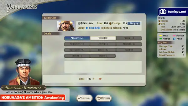 این سیستم به بازیکنان این امکان را میدهد تا قلمرو خود را گسترش دهند و نیروهای جدید جذب کنند. با بیش از 2200 افسر در اختیارتان، میتوانید نیروهای نظامی خود را به بهترین شکل ممکن مدیریت کنید. در بازی، شما باید تصمیمگیریهای دیپلماتیک مهمی انجام دهید که تأثیر زیادی بر روند بازی دارد. با توجه به دقت تاریخی و ویژگیهای واقعگرایانه، بازی NOBUNAGA'S AMBITION: Awakening یک تجربه واقعی و مفهومی از دوران تتوریگاوا ارائه میدهد. با کیفیت بالا و ویژگیهای گرافیکی منحصر به فرد، بازیکنان به یک دنیای واقعی و زیبا دعوت میشوند. به طور کلی، بازی NOBUNAGA'S AMBITION: Awakening یک تجربه استراتژیک و تاریخی جذاب است که علاقهمندان به بازیهای استراتژیک و تاریخی میتوانند از آن لذت ببرند و داستان جذاب دوران تتوریگاوا را تجربه کنند.