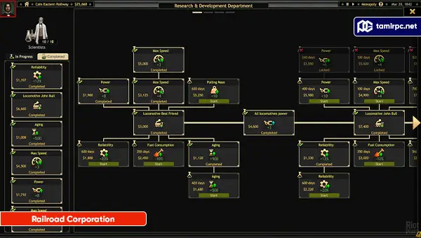 Railroad Corporation یک بازی شبیهساز مدیریت است که در دههی نوزدهم و در دوران پیشرفت قطارها جریان دارد. این بازی توانسته است با ترکیبی از عناصر استراتژیک، اقتصادی و مدیریتی، عشق عدهای از علاقمندان به شبیهسازیها را به خود جلب کند. با توجه به تاریخ تولید اصلی بازی در سال 2019، این بازی توسط استودیو Corbie Games به بازار عرضه شد. Railroad Corporation توسط استودیو Corbie Games توسعه داده شده است. این استودیو با طراحی بازیهای مدیریتی و شبیهسازی معروف شده و با انتشار این بازی به جمع بازیهای تاکتیکی و استراتژیک پیوست.