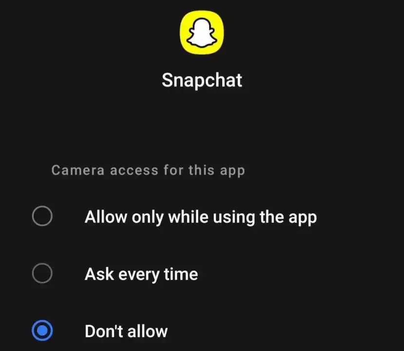 به عنوان مثال، اگر یک اپلیکیشن مشکوک به دوربین شما دسترسی دارد، روی آن ضربه بزنید و گزینه Don’t Allow را انتخاب کنید تا از استفاده آن اپلیکیشن از دوربین گوشیتان جلوگیری کنید.