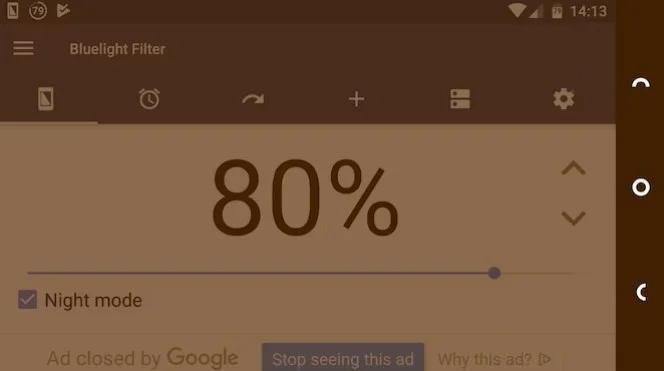 Twilight بهترین گزینه برای فیلتر نور آبی در اندروید است. این برنامه به تدریج دمای رنگ صفحه نمایش را کاهش داده و آن را قرمزتر می‌کند و در نهایت صفحه نمایش را به روشنایی و رنگ انتخابی شما می‌رساند.