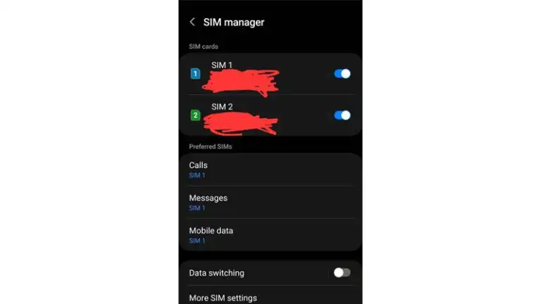 - در بخش "Preferred SIMs" انتخاب کنید که کدام سیمکارت شماره 1 و کدام شماره 2 باشد.