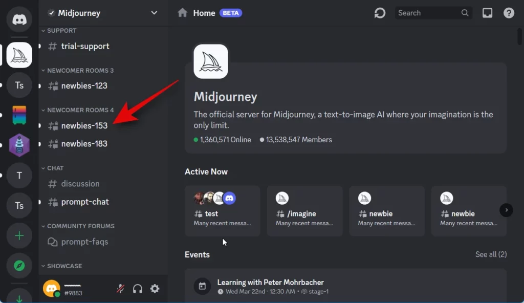 با کلیک روی این گزینه و پذیرش دعوت‌نامه، به سرور میدجرنی در دیسکورد وارد می‌شوید. در آغاز، امکان استفاده رایگان از ۲۵ دستور برای تولید تصاویر وجود دارد. پس از آن، برای ادامه استفاده نیاز به خرید اشتراک خواهید داشت.