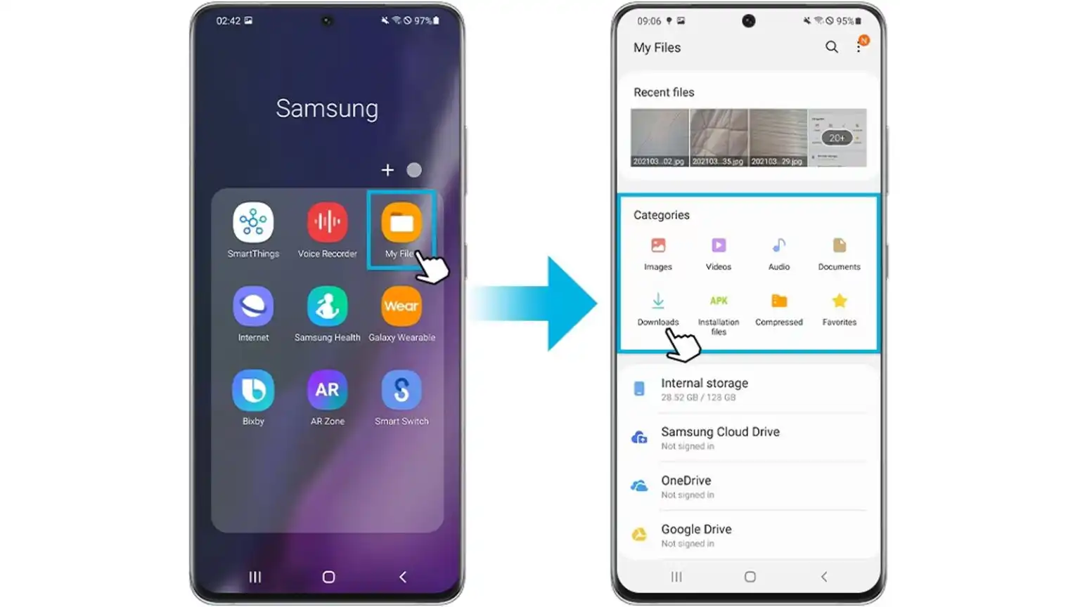 اگر کارت SD را به گوشی خود اضافه کرده‌اید تا حافظه‌اش را افزایش دهید و با این حال متوجه می‌شوید که فایل‌های جدید همچنان در کارت حافظه ذخیره نمی‌شوند، ممکن است مشکل از تنظیمات گوشی باشد. برای بررسی علت، به بخش Storage بروید و بررسی کنید که آیا دلیل نصب نشدن برنامه‌ها به خاطر عدم شناسایی حافظه جدید است یا علت دیگری وجود دارد. همچنین، می‌توانید از برنامه پیش‌فرض سامسونگ به نام My Files برای بررسی میزان حافظه اضافه شده استفاده کنید. اگر گوشی کارت SD را شناسایی کند، اطلاعات مربوط به آن در صفحه اصلی پوشه «فایل‌های من» قابل مشاهده خواهد بود.