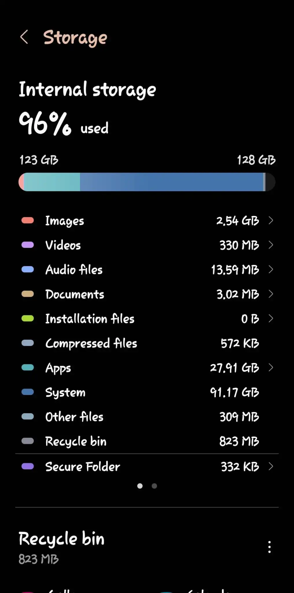 برای بررسی این موضوع، به تنظیمات یا Settings گوشی بروید و در نوار جست‌وجو، عبارت Storage را وارد کنید تا به صفحه مربوطه دسترسی پیدا کنید. در صفحه Manage Storage، می‌توانید مشاهده کنید که چه مقدار از ظرفیت کلی گوشی شما پر شده است و هر بخش از برنامه‌ها و فایل‌ها مانند ویدیوها، عکس‌ها، فایل‌های صوتی و فایل‌های نصبی چه میزان از فضای دستگاه را اشغال کرده‌اند.