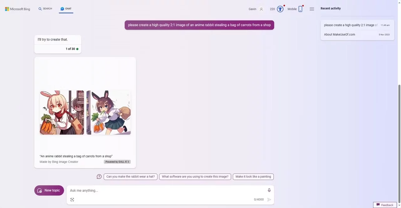 مایکروسافت، با سرمایه‌گذاری میلیاردی در OpenAI، امکان استفاده رایگان از GPT-4 را از طریق Bing Chat در مرورگر اج فراهم کرده است. این ابزار به کاربران اجازه می‌دهد روزانه تا ۳۰۰ چت انجام دهند و در هر چت ۳۰ سؤال بپرسند. علاوه بر این، قابلیت تولید تصاویر از متن نیز به صورت رایگان در دسترس است.