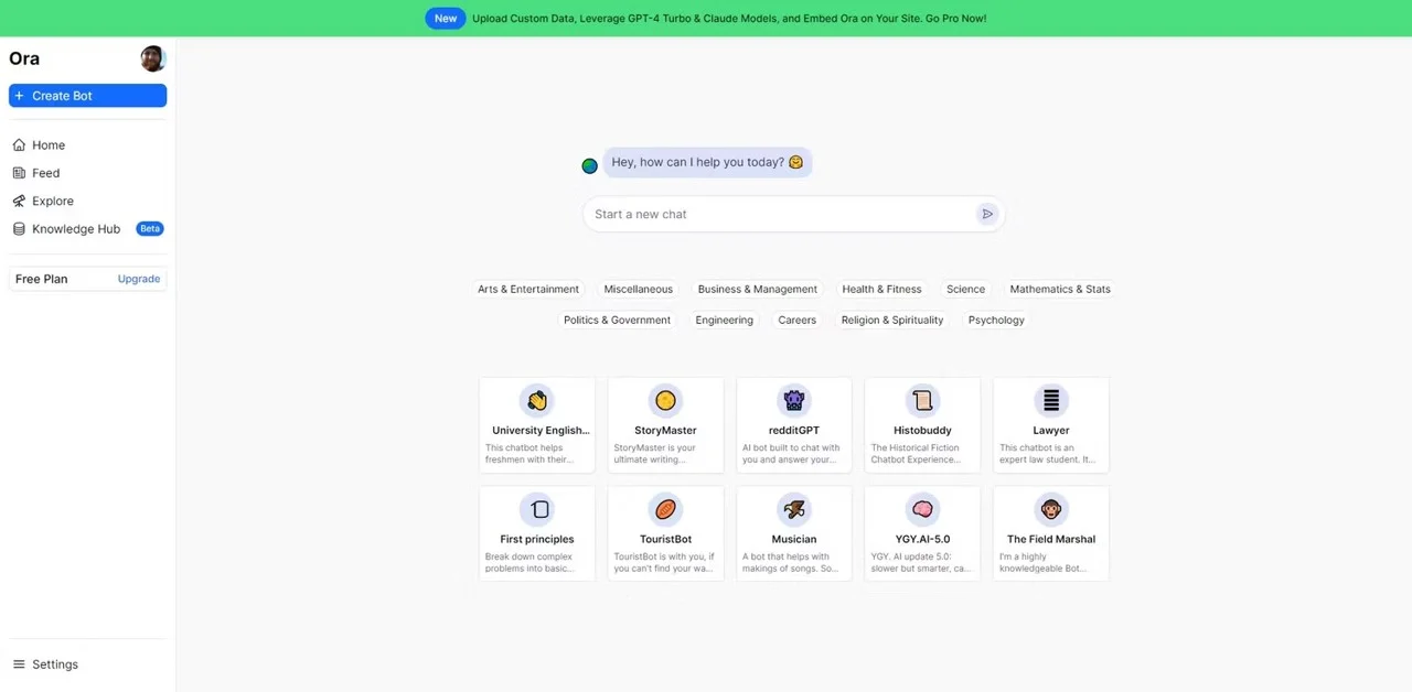 Ora یک ابزار هوش مصنوعی جذاب است که به کاربران اجازه می‌دهد ربات‌های چت را برای استفاده در وب‌سایت‌ها یا سایر محیط‌ها ایجاد کنند. دسترسی به GPT-4 در این ابزار به نسخه‌های Hobby و Pro منتقل شده است که هزینه آن از ۲۵ دلار در ماه شروع می‌شود.