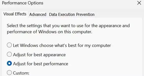 ویندوز دارای دو حالت برای تنظیم جلوههای بصری است: best performance و best appearance. گزینه دوم، انیمیشنها و افکتهای جذابی را به نمایش میگذارد که ممکن است سرعت سیستم، بهویژه در مدلهای پایینرده، کاهش یابد.