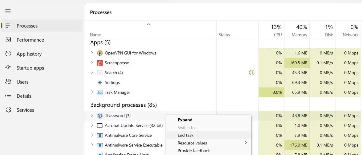 ۳. روی آنها کلیک راست کرده و گزینه End task را انتخاب کنید.
