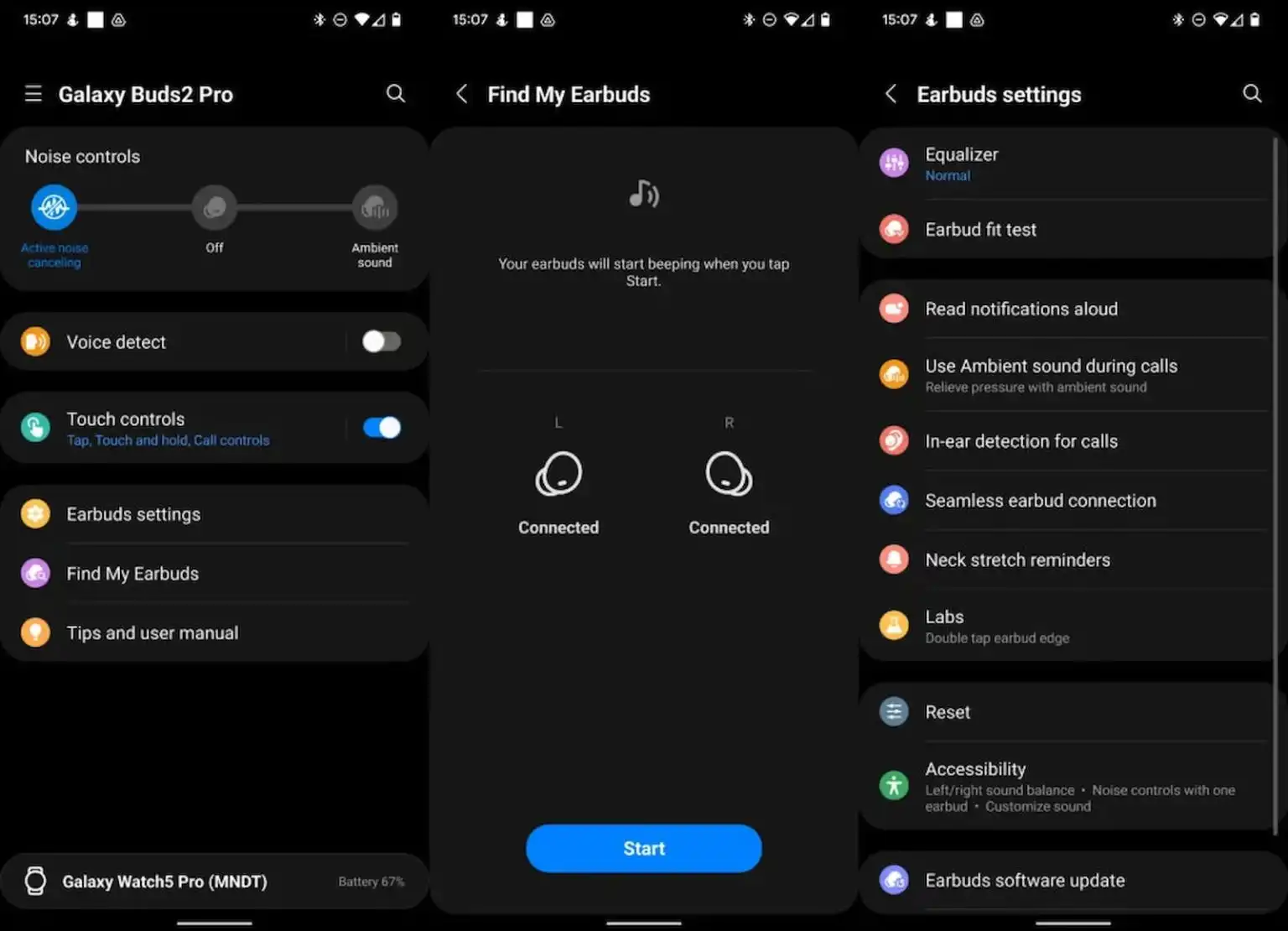 قابلیت‌های برنامه Galaxy Wearable برای بادزها