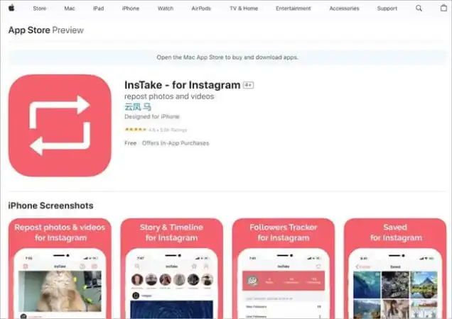 اگر به دنبال دانلودری قدرتمند برای ذخیره عکسها و ویدئوهای اینستاگرام هستید، InsTake گزینهای عالی است. این برنامه به راحتی استوریها و IGTV را بارگیری میکند و همچنین از حالت دارک مود پشتیبانی میکند.