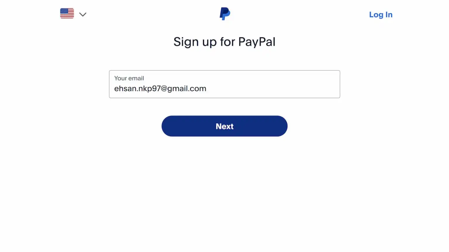 ایمیل خود را وارد کنید. در نظر داشته باشید که این ایمیل اهمیت بالایی برای پی پال دارد و حتما باید از ایمیلی استفاده کنید که به آن دسترسی دارید.