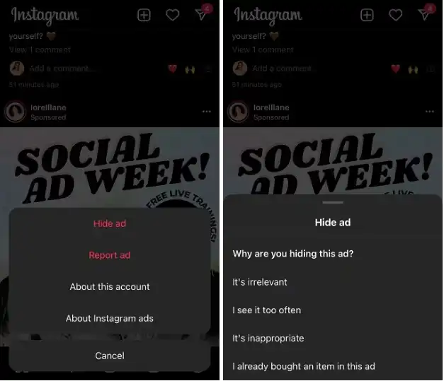 اگر از گزینههای It’s inappropriate یا It’s irrelevant استفاده کنید، احتمالاً آن تبلیغ دیگر نمایش داده نخواهد شد.