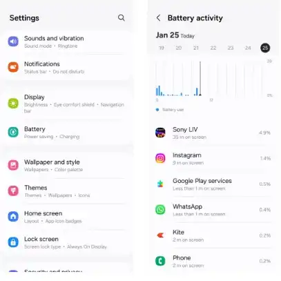 همچنین میتوانید با مراجعه به منوی مصرف باتری، برنامههایی که بیشترین مصرف را دارند شناسایی کنید. این اطلاعات به شما کمک میکند تصمیمگیری بهتری درباره متوقف کردن برنامهها داشته باشید.