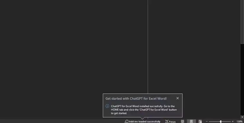 4. پس از تأیید موفقیت‌آمیز، می‌توانید از قابلیت‌های ChatGPT در ورد استفاده کنید.