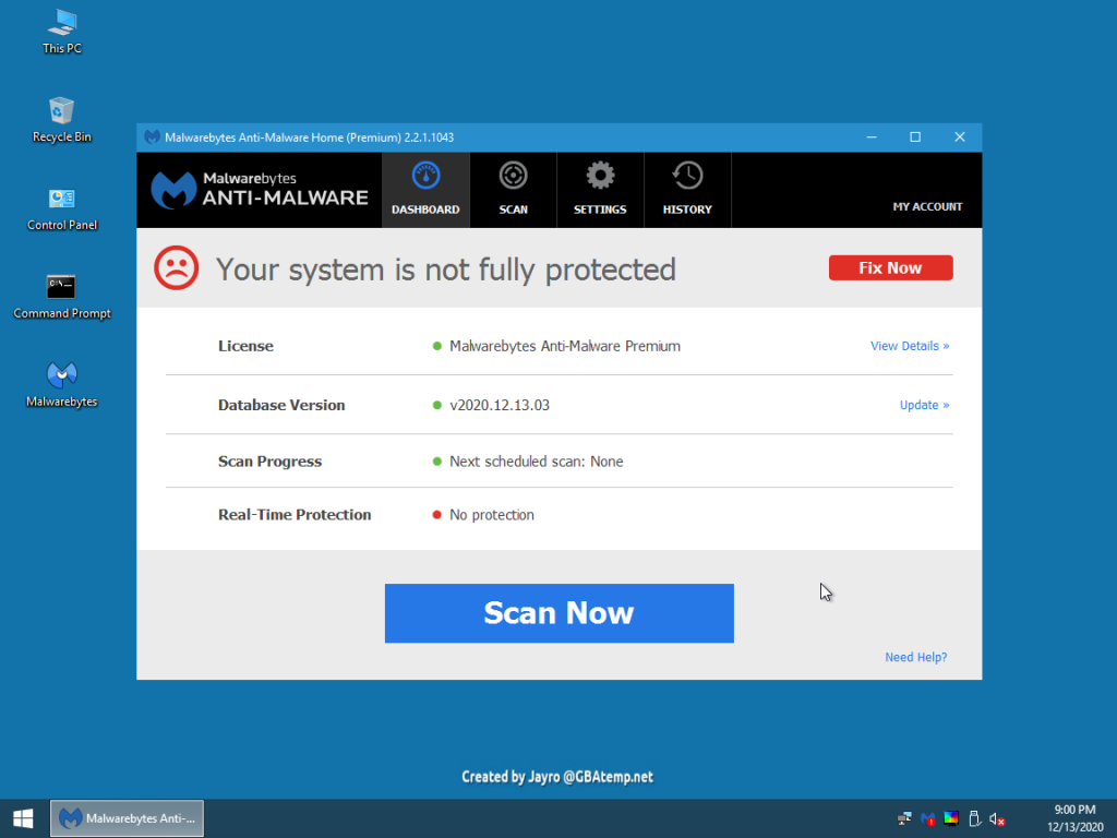 • بعد از بوت شدن سیستم میتوانید توسط Malwarebytes کامپیتر را اسکن کنید.